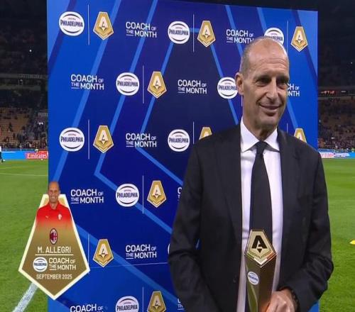 最终阿莱格里凭借出色的战绩被评选为意甲联赛的9月最佳较量,并在本场比赛开始前领取了奖杯。