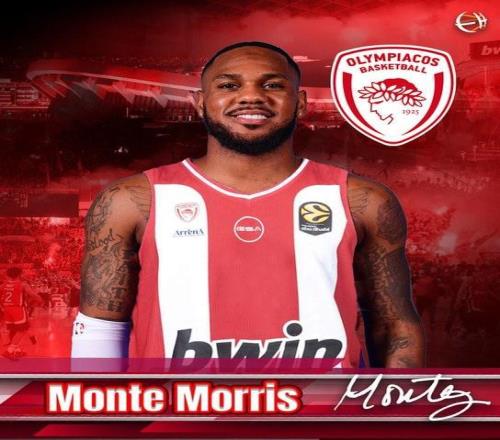 官方:前NBA后卫蒙特莫里斯加盟希腊豪门奥林匹亚科斯男篮