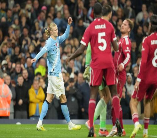 曼城30利物浦距榜首4分!哈兰德失点+斩英超第14球多库世界波 -